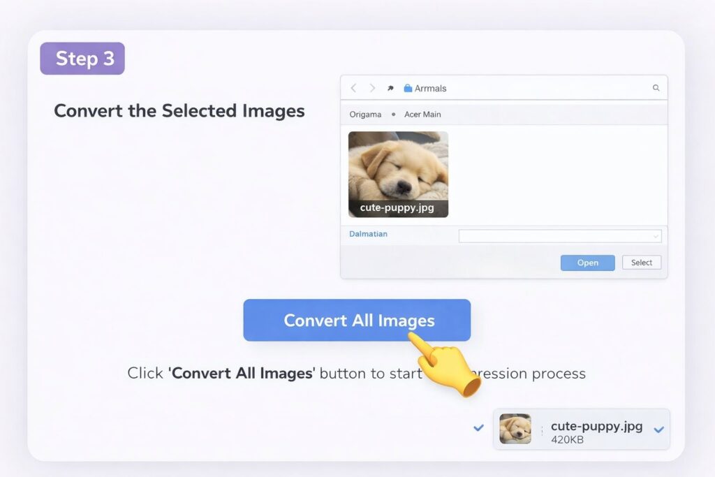 After completing all the settings, click the “Convert All Images” button. As soon as you click this button, the tool immediately begins resizing your photo to the specified parameters.